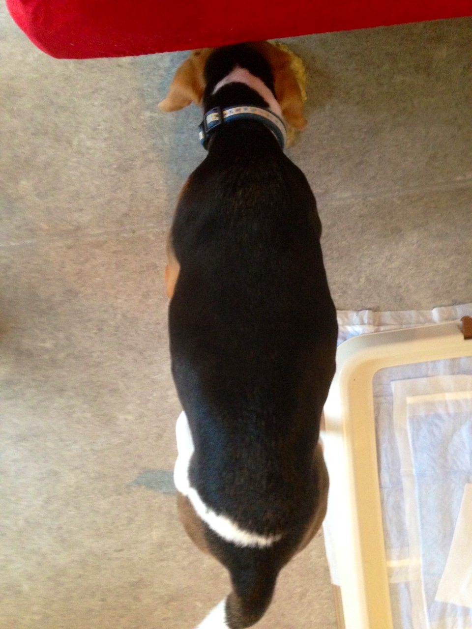 食べきった後、ゴハンを勧めても顔を背け(笑)座り込んで動けなくなり