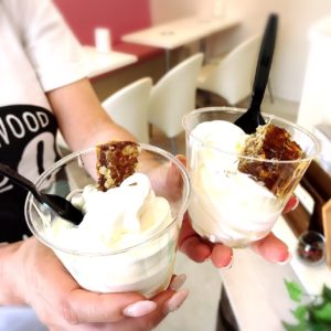 蜂蜜の巣が乗ったハニーソフトクリームめちゃくちゃ美味しい♡