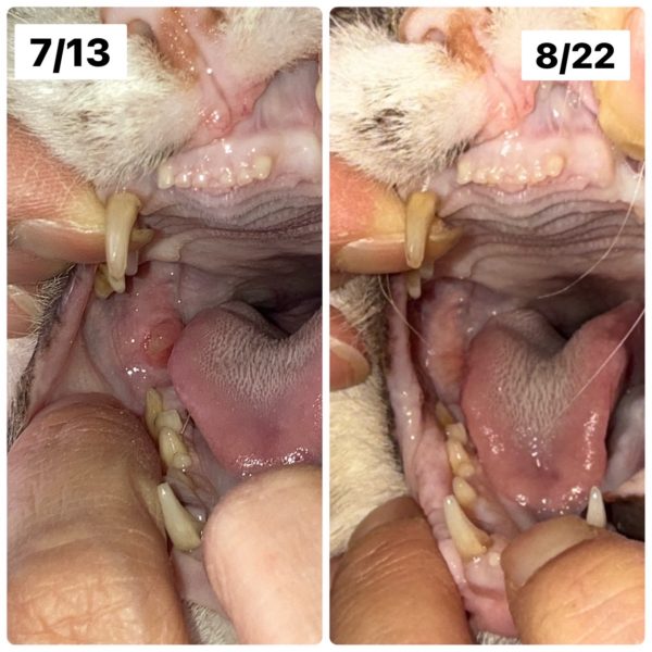 口内の奥が盛り上がって腫れていた猫ちゃん。