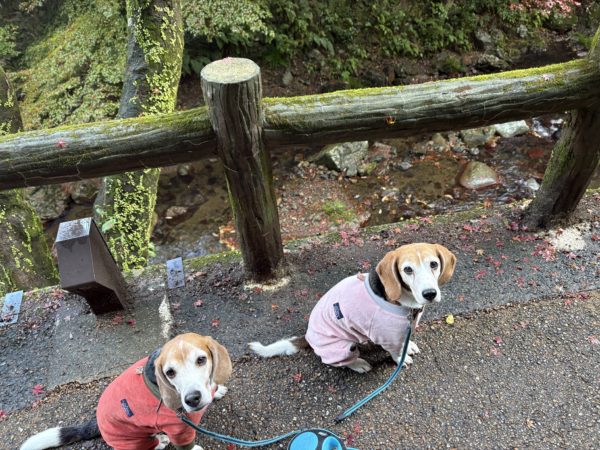 久しぶりに犬たちを連れてお散歩がてら滝道へ。