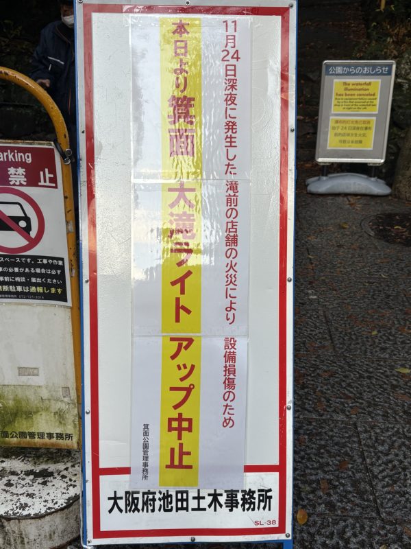 箕面の大滝で火事