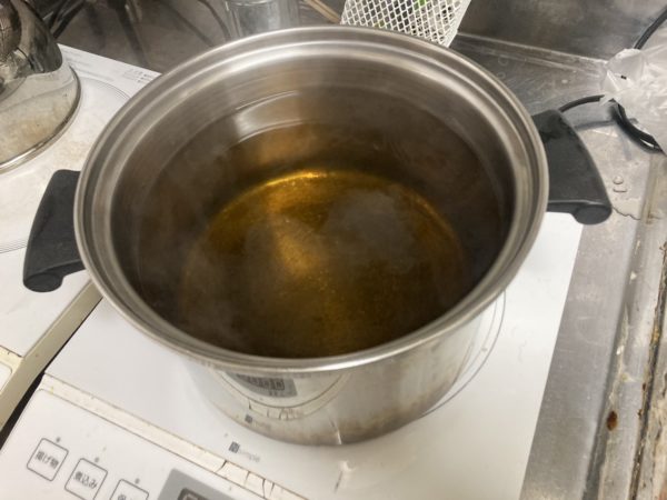 その服をお湯で煮出して匂いを軽減しようと試みました。